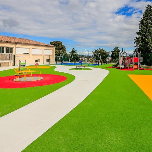 Toutes sortes de construction, terrains de sport, espaces verts, jardins, aire de jeux, padel